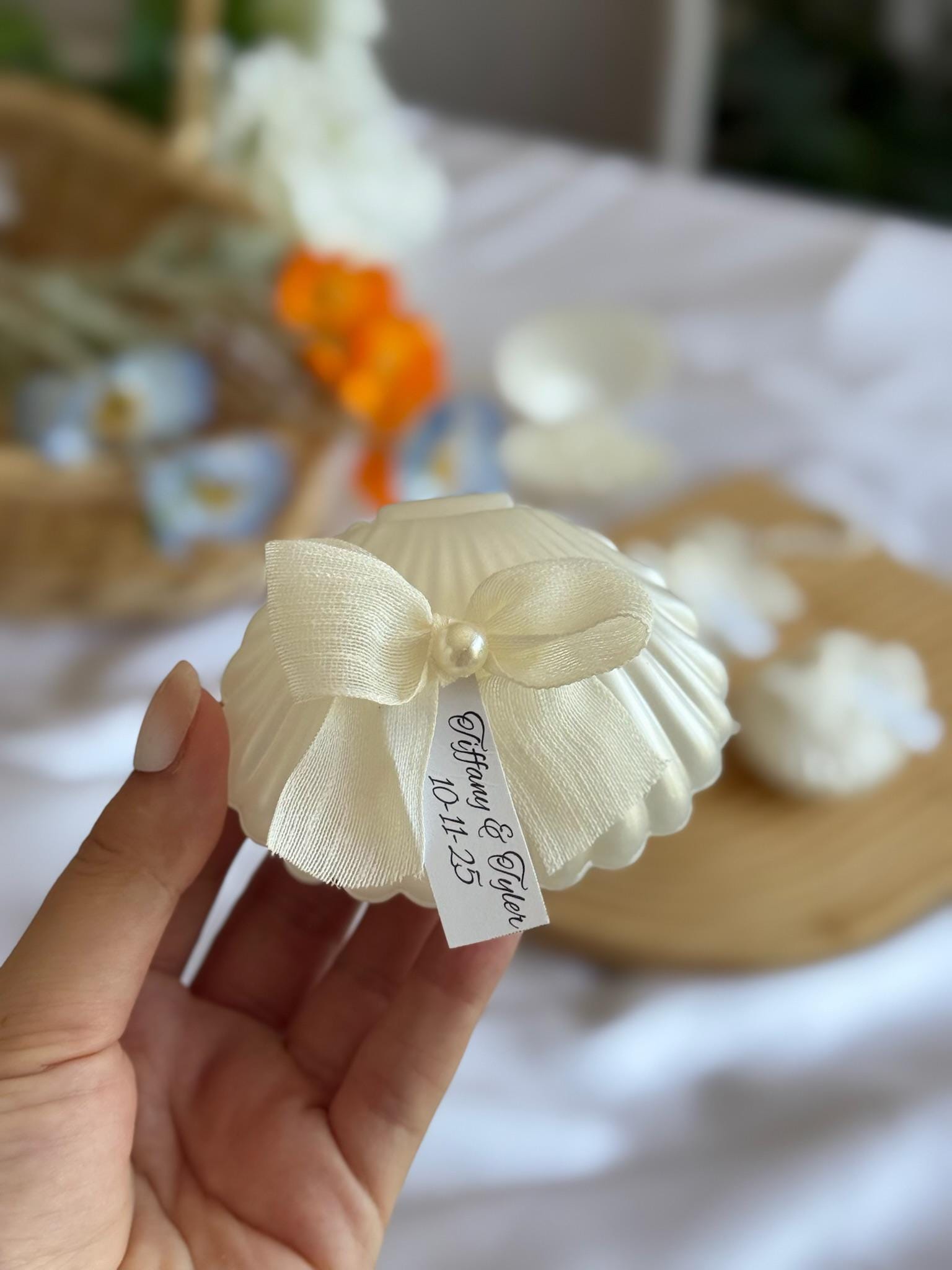 Seashell-Shaped Soap Favor with Clear Box – Multiple Tag Options